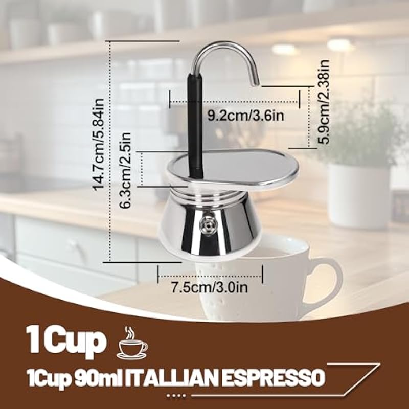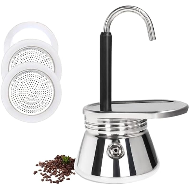 1 Cup Single Tube Moka Pot Uncoated Stainless Steel Stovetop Espresso Maker Cafeteras Italian Percolator Espress Makers Capable Greca Mocha Coffee Machine with 2 Pcs Filter with 3 Pcs Silicone Gasket