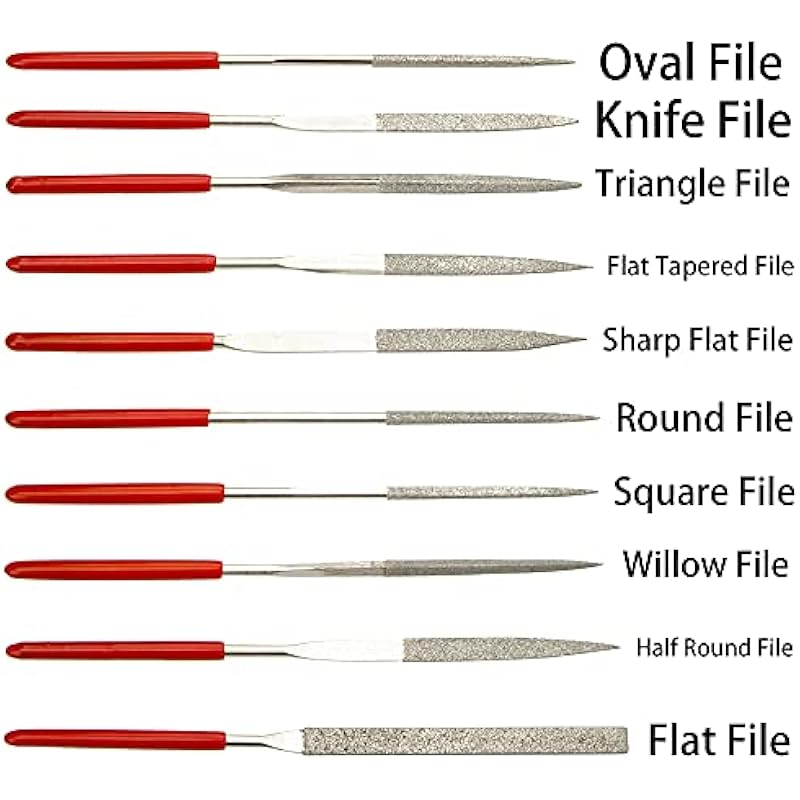 - Metal body, anti-skid rubber handle, polycrystalline diamond coated files, the files are effective on wood, bone, and soft metals such as brass, copper and aluminum, great for use.