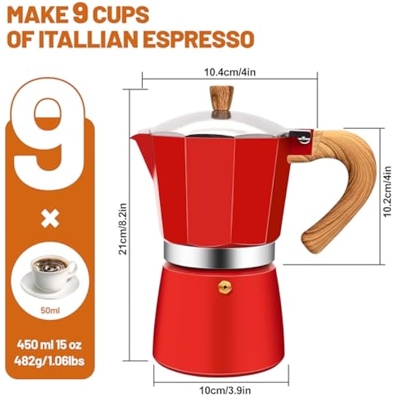 12 Cup Stainless Steel Moka Pot & 9 Cup Red Aluminum Espresso Stovetop Coffee maker Percolator Italian Coffee Maker