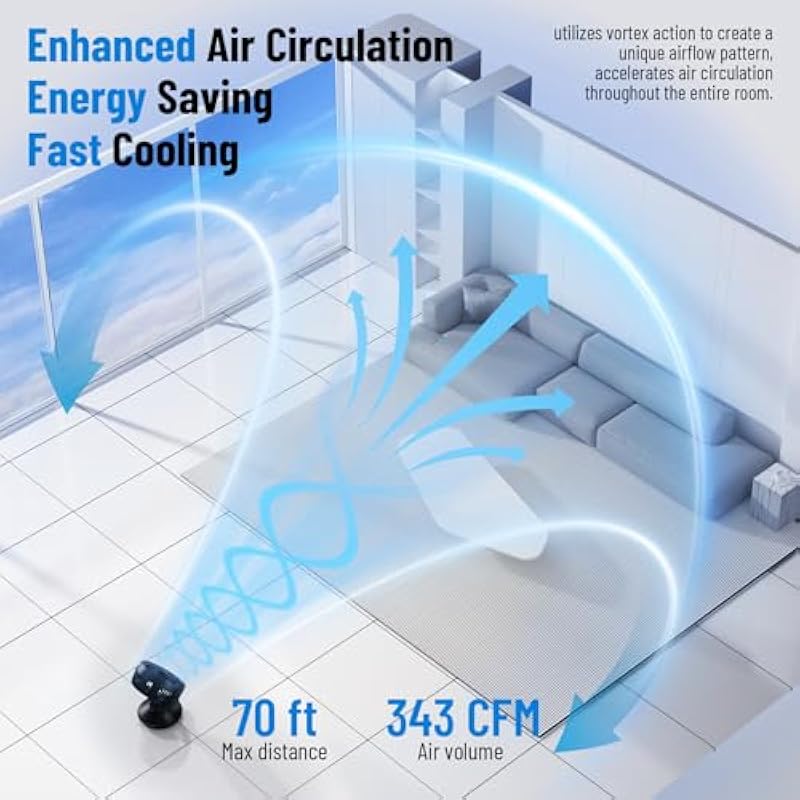 | Efficiency | [Inferred: More energy-efficient than traditional pedestal fans] |