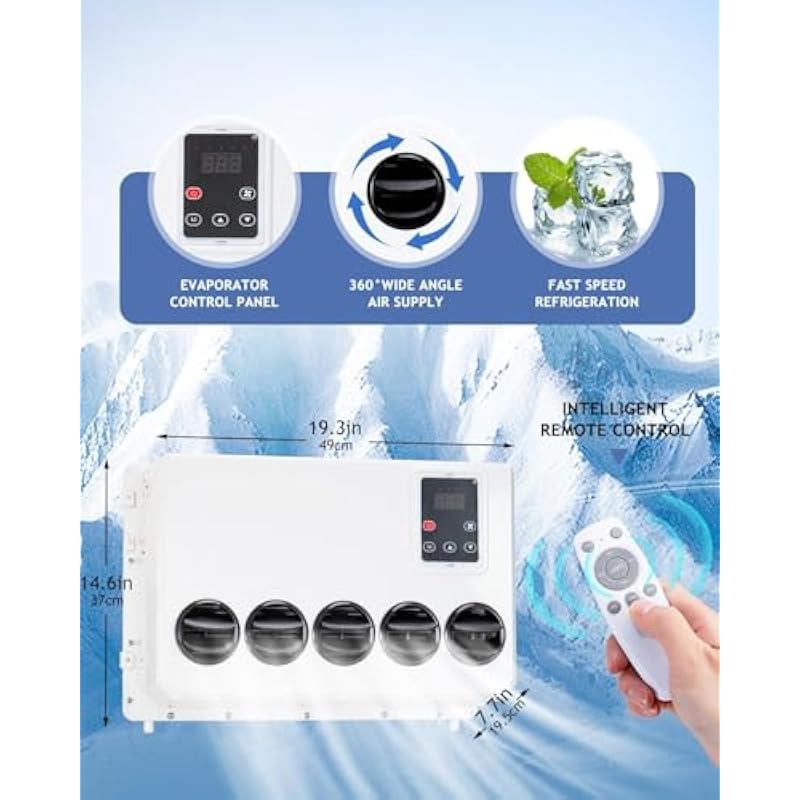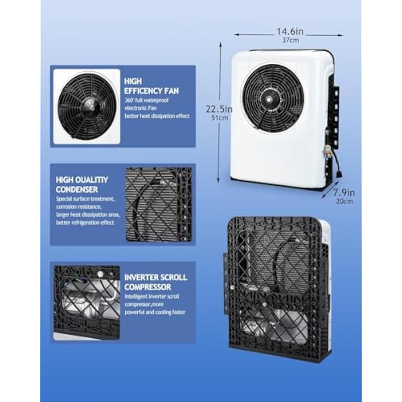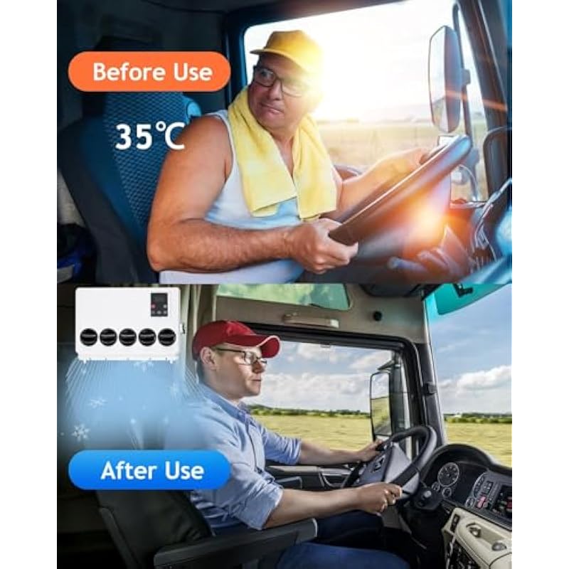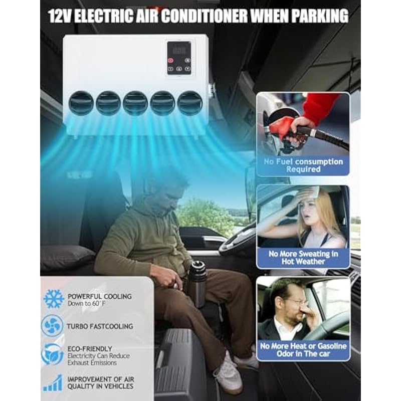 - 12V DC Air Conditioner: Perfect parking air conditioning for truck sleepers. Simply connect our 12V A/C unit to an external power source to achieve rapid cooling, even with the engine turned off. Experience consistent cooling in your truck cab, whether parked at a job site or on a secluded farm. This unit promotes comfort while simultaneously reducing fuel consumption and minimizing environmental impact.