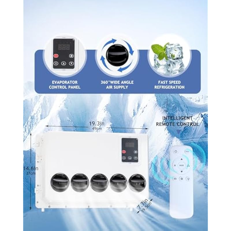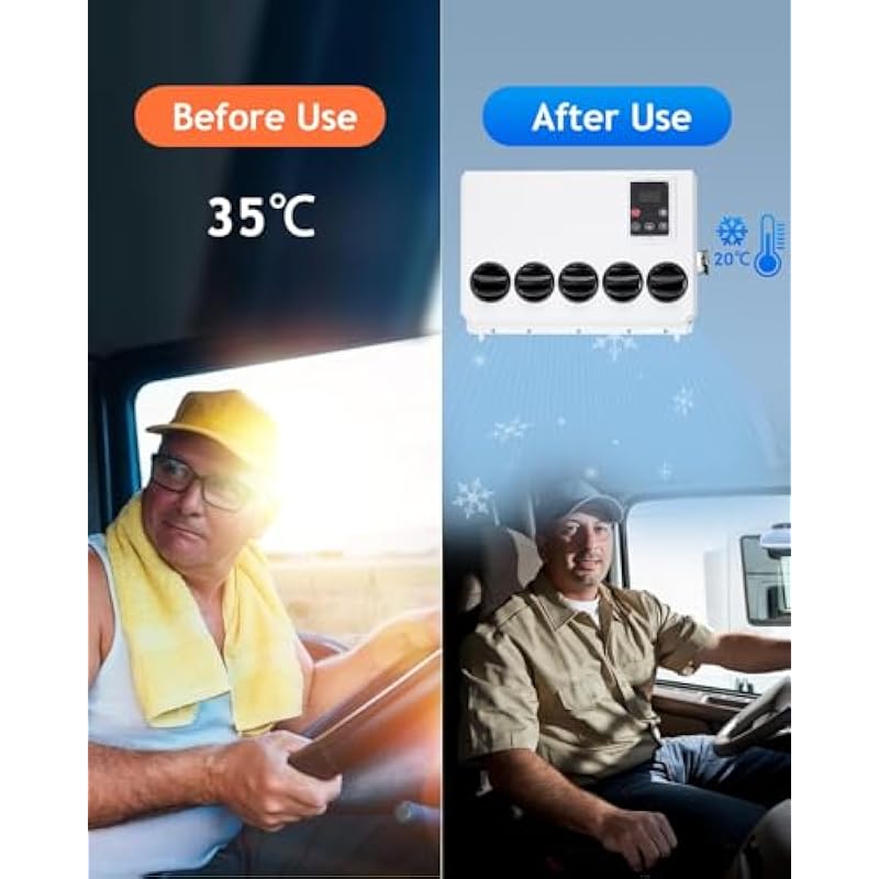 - 【Easy to Use】Screw-On mounting,no need to cut;The package includes both internal and external units with comprehensive accessories and instructions, facilitating a smooth installation process. Control through the Remote or the control panel,can adjust wind speed, modes, temperature, etc.Match the digital display screen,allowing convenient and simple operation when driving or resting.