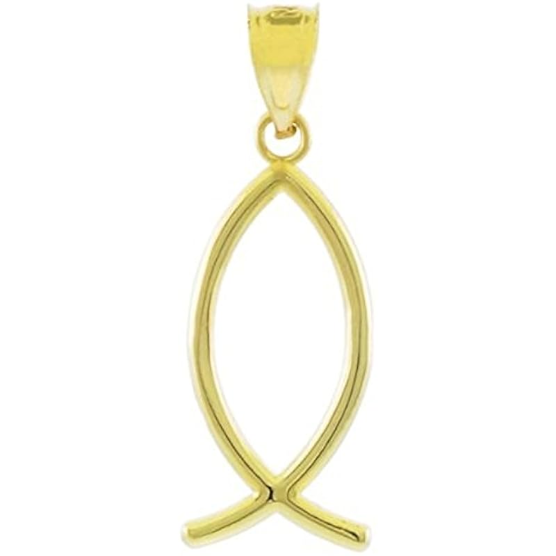 14k Yellow Gold Ichthus Christian Vertical Fish Pendant