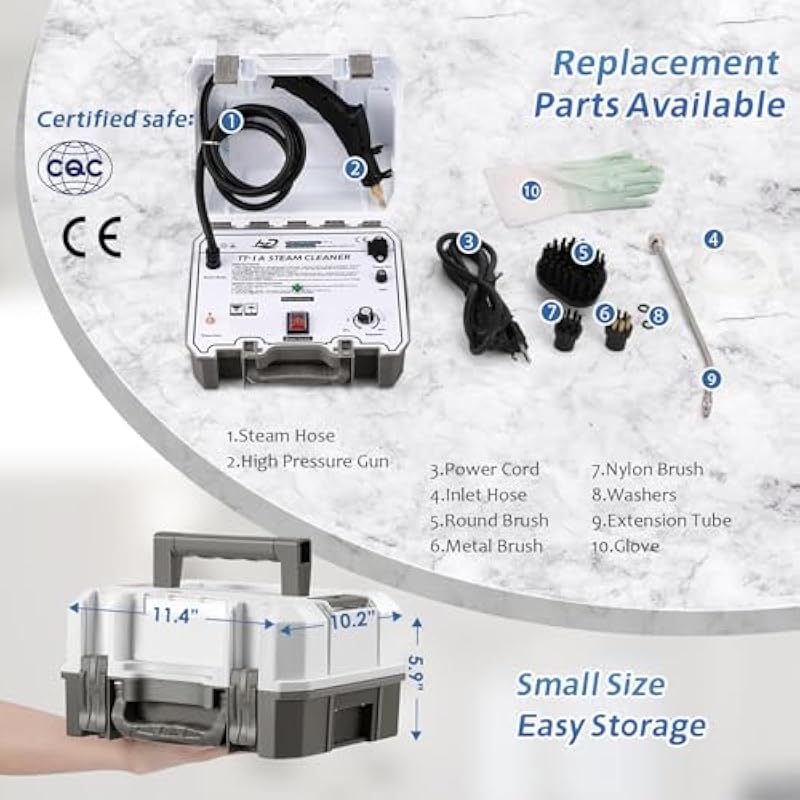 - [Powerful Cleaning Capability]: Boasting a robust 1500W engine and 4bar/58psi of potent force, this high-pressure steam cleaning device excels in dissolving stubborn grease and dirt. Its effectiveness spans across a variety of settings, enabling effortless cleansing of kitchens, bathrooms, living areas, and vehicles with its steam power for tiles and grout.