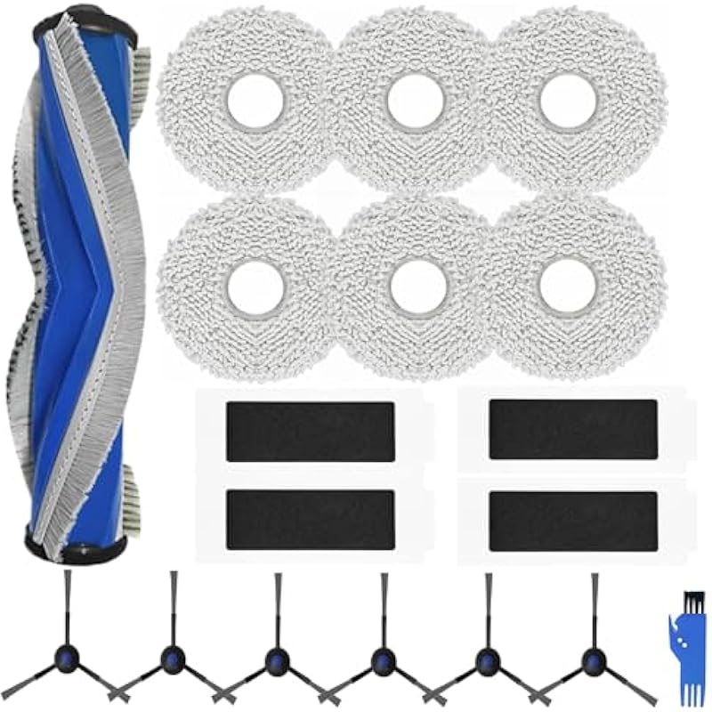 - Package Includes:One main brush, four filters, six mop pads, six side brushes and a clean brush