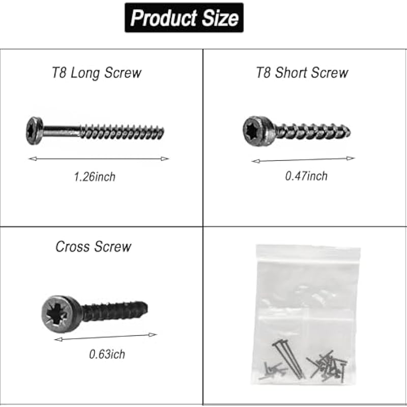 - Package:You will get eighteen pcs screws, include three T8 long screws, five T8 short screws, ten universal cross screws