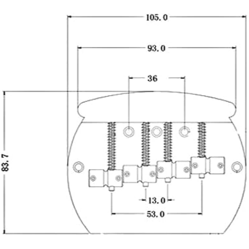 - Bridge size: 105 x 83.7 x 93mm; Center distance between two strings: 36mm; The longest distance between two strings: 53mm.