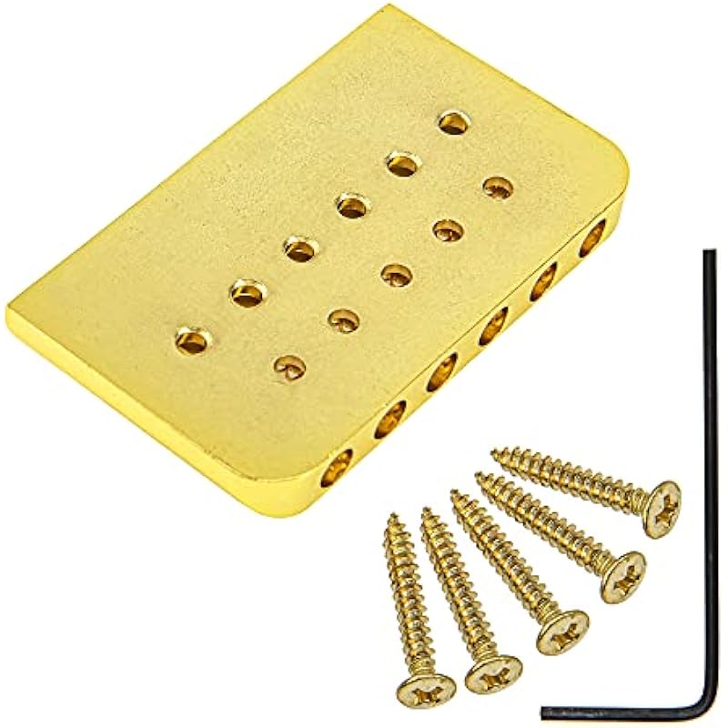 1Pcs Yootones Electric Guitar Hardtail Fixed Bridge Assembly Compatible with 6 String Fender Strat Stratocaster Tele Telecaster Guitar Parts (Gold)