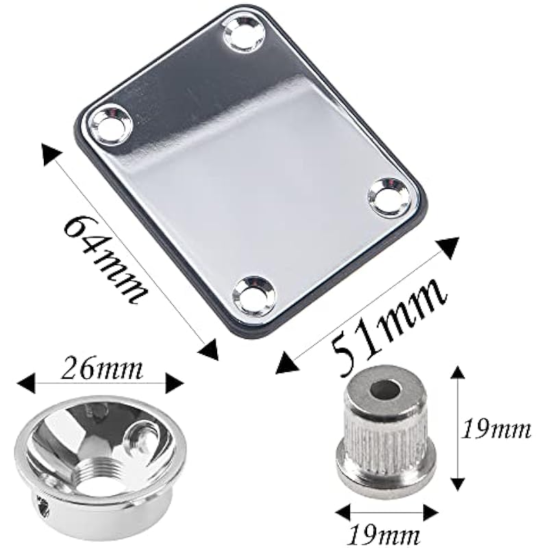 - Guitar String Ferrules Size: 19 x19mm; Electrosocket Jack Plate Size: 26 x 9.5mm; Metal Neck Plate Size: 64 x 51 x 2mm.