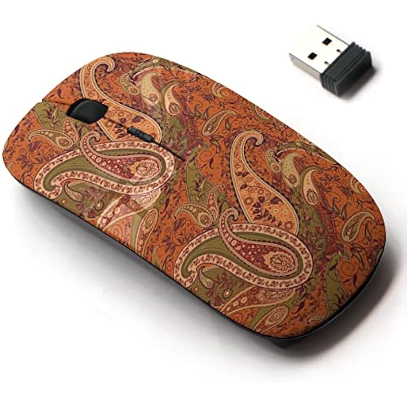 2.4G Wireless Mouse with Cute Pattern Design for All Laptops and Desktops with Nano Receiver – Orange Paisley Design