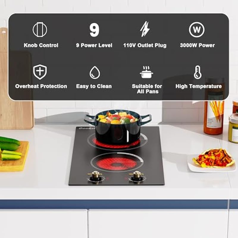 - Cooksir 2 Burner Electric Cooktop 220V and 24 Inch Electric Cooktop