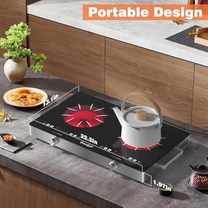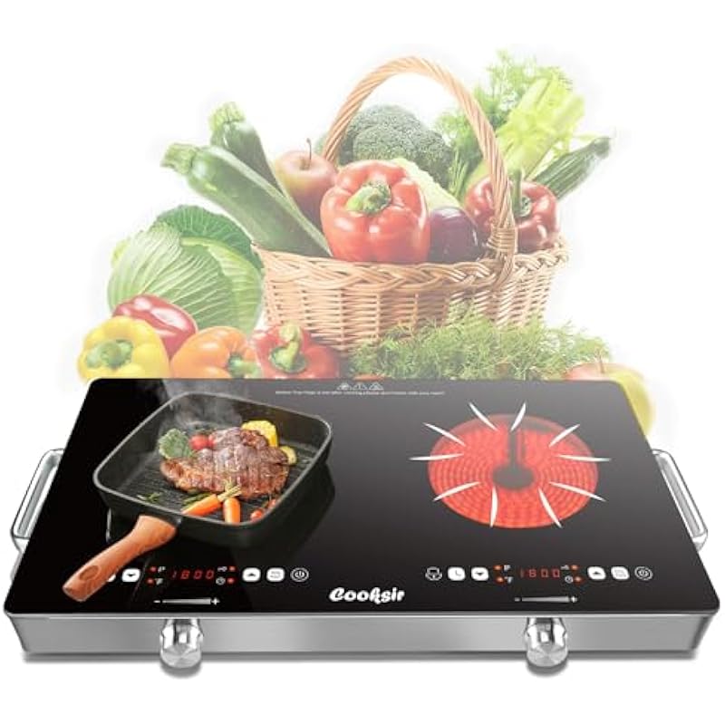 - 💡【Dual Control Methods & Stepless Adjustment 】Choose between touch control and knob control for seamless power adjustments, ranging from 400℉~1200℉(P0~P9). Cooksir countertop 2 burner electric cooktop allows you to have precise control over your cooking, from summering to frying, ensuring perfect results every time. Suitable for elders and people with poor eyesight.