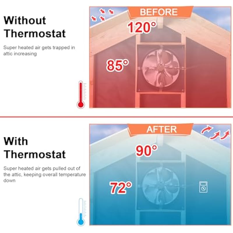 - ► Upgraded Your Attic Ventilation System – Upgrade your attic ventilation system with our premium attic fan thermostat replacement. Designed for ease of use and superior functionality, this 120V thermostat is the ideal choice for replacing your existing attic fan thermostat. Perfect replacement for Power Attic and Exhaust Fans.