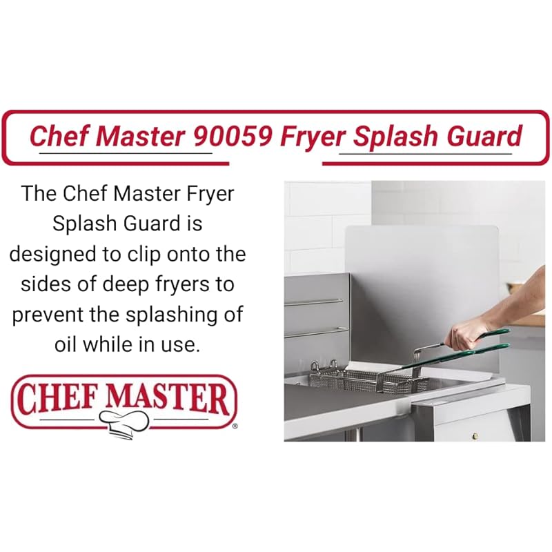 - STAINLESS STEEL FRYER SPLASH GUARD FOR MAXIMUM DURABILITY – Enhance your commercial kitchen safety with the Chef Master Fryer Splash Guard, constructed from premium 18-gauge stainless steel for superior strength, rust resistance, and long-lasting performance. Built to withstand the rigors of high-volume frying, this professional-grade splash shield provides a sturdy barrier that protects chefs, equipment, and surrounding surfaces from dangerous hot oil splatters and spills. Ideal for restaurants, food trucks, catering operations.