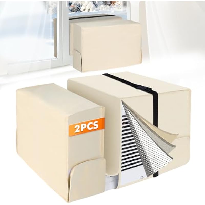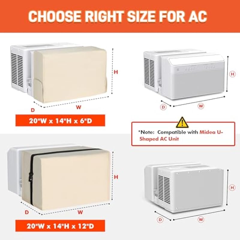 2 PCS AC Covers for Outside and Inside Compatible with Midea AC 8000/10000/120000 BTU, 3 Layers Insulation Window Air Conditioner Covers 20″W x 14″H x 12″D and 20″W x 14″H x 6″D, Beige and Beige