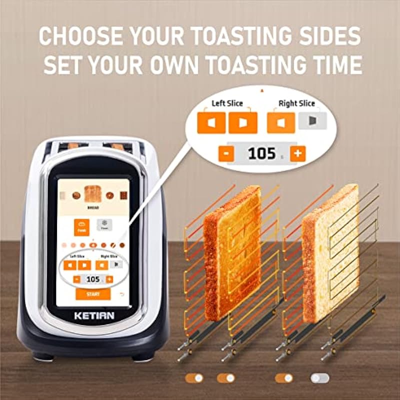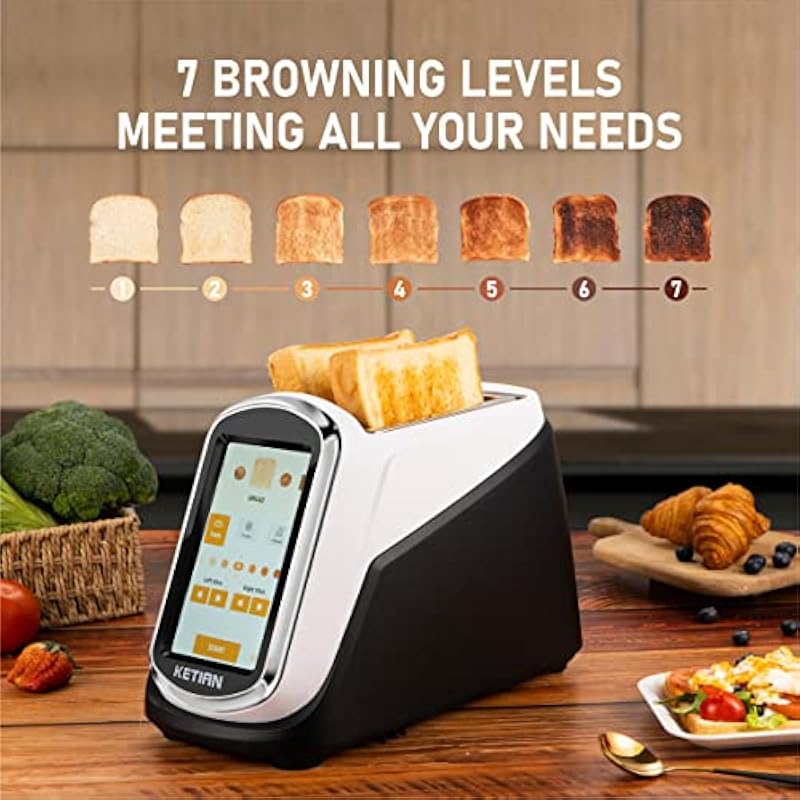 - Smart System 7’’ LCD Touchscreen:This toaster is equipped with a 7’’ full-vision LCD touchscreen and a fully automatic smart system, automatic lifting with leverless. With the precisely calculated time, the bread can be toasted to the best taste.