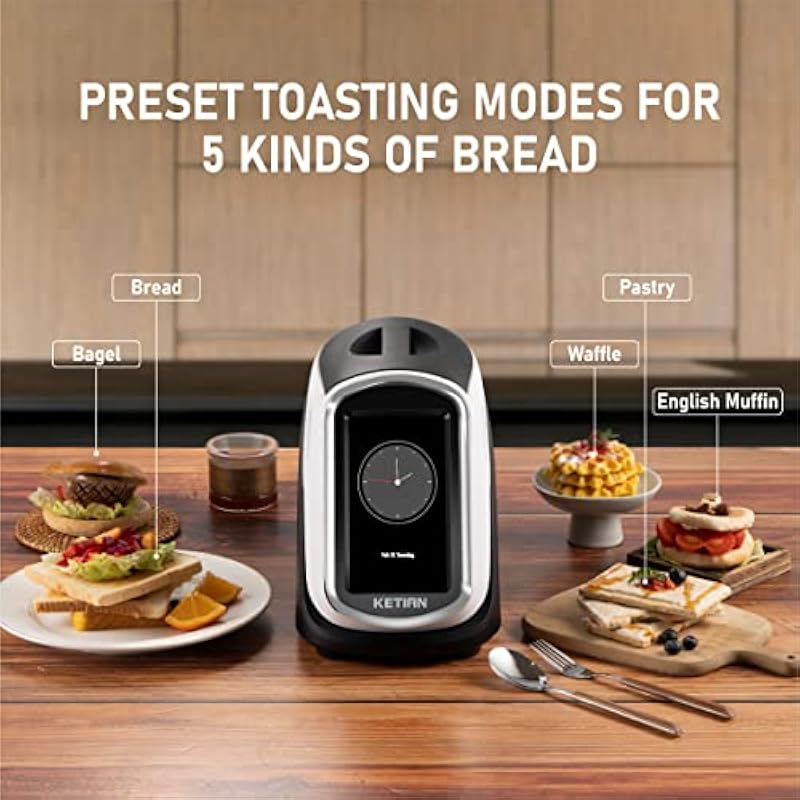 2 Slice Touchscreen Toaster,2 Wide Slots,Smart Bread Toaster for Bagel English Muffins Toast Pastry Waffles Bread, Customize Toasting Time,Have a Quick Look,120V 1400W