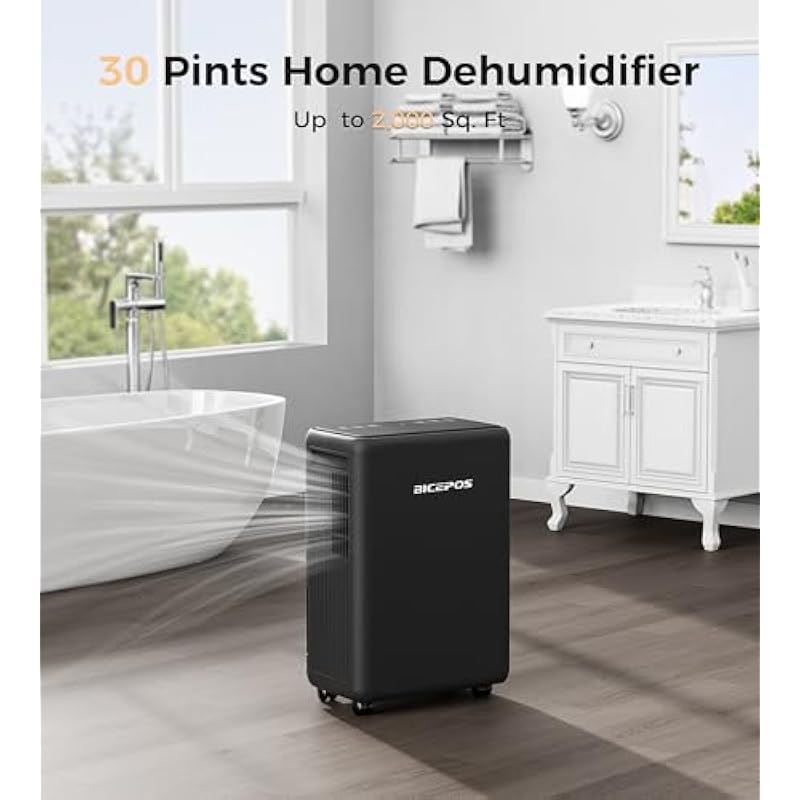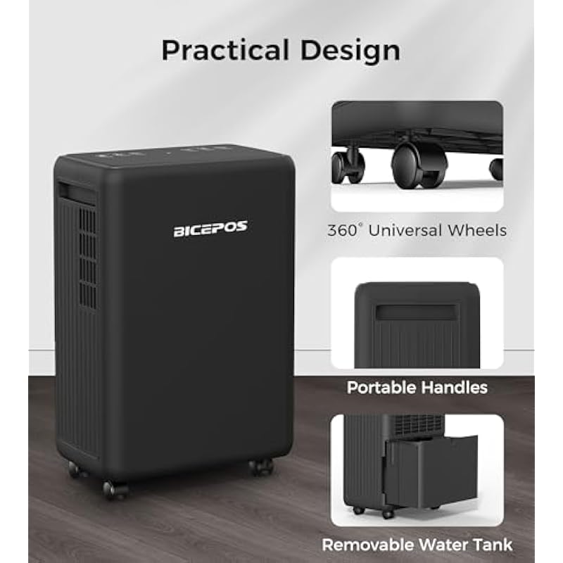 - Innovative Design for Safety and Convenience – The Bicepos dehumidifier combines seamless mobility with 4 smooth-rolling casters and ergonomic handles for effortless portability. Advanced auto-restart and auto-defrost ensure uninterrupted performance in any condition. Perfect for homes, offices, and more, it delivers reliable, long-lasting dehumidification