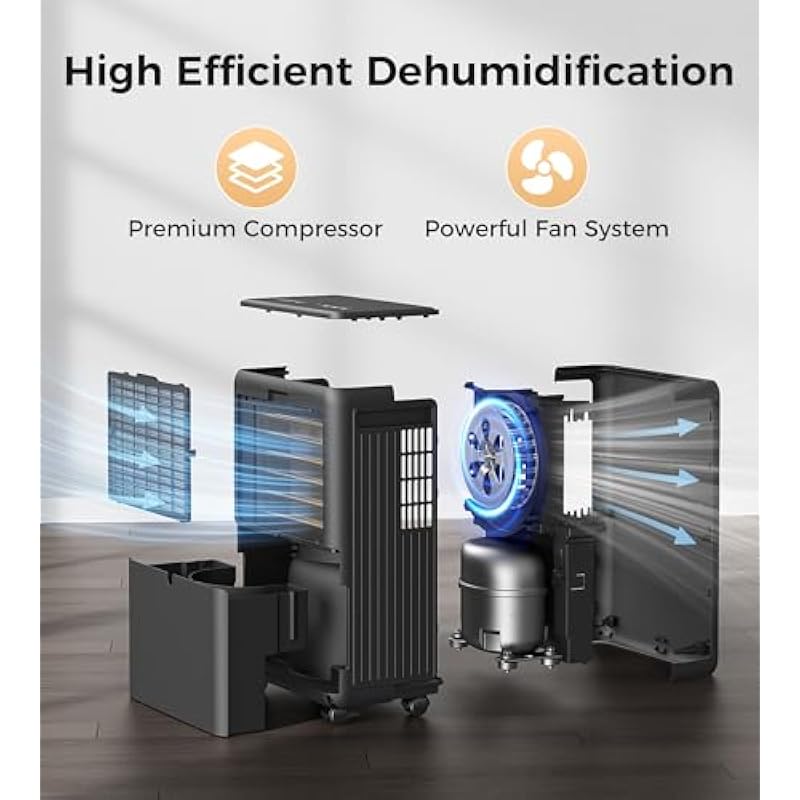 - Cutting-Edge Technology for Unmatched Efficiency – This dehumidifier for basement delivers unparalleled performance with advanced rotary compression technology, removing up to 30 pints/day in extreme humidity (95°F, 95% RH). Designed for spaces up to 2000 sq.ft, it ensures optimal humidity control with a customizable range of 30%-80% (adjustable in 5% increments). Energy-efficient and versatile, it’s perfect for basements, bathrooms, large rooms, offices, kitchens, and more