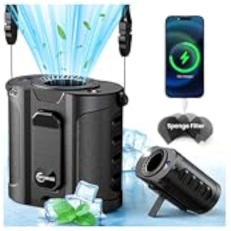 - 【Hands-Free Summer Essential】This versatile fan can work as a waist clip fan, under shirt fan, hanging neck fan or desk fan. It’s your ultimate outdoor companion with built-in LED flashlight and phone charger, perfect for jobsites, camping or daily adventures. Stay cool and hands-free wherever you go!