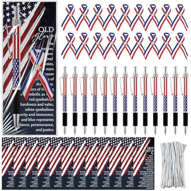 - 4th of July Pens Set: the package includes 24 American flag ribbon pins, 24 4th of July ballpoint pens, 24 bookmarks, 24 clear plastic gift bags, and 24 silver twist ties; These are ideal gift items for honoring veterans, experience a complete gift set designed to evoke patriotic sentiments