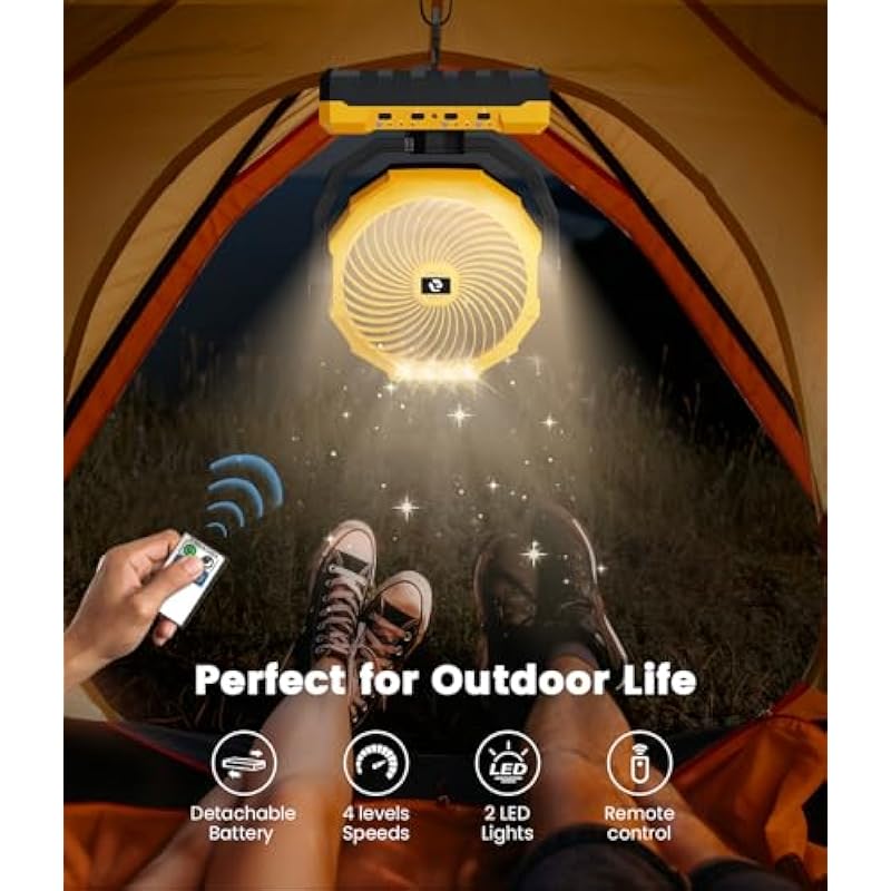 24000mAh Detachable Battery Camping Fan – 3-in-1 Portable Camping Fans with LED & Remote – 4 Speeds Battery Operated Outdoor Fan for Tent,Office,Jobsite,Workshop,Travel