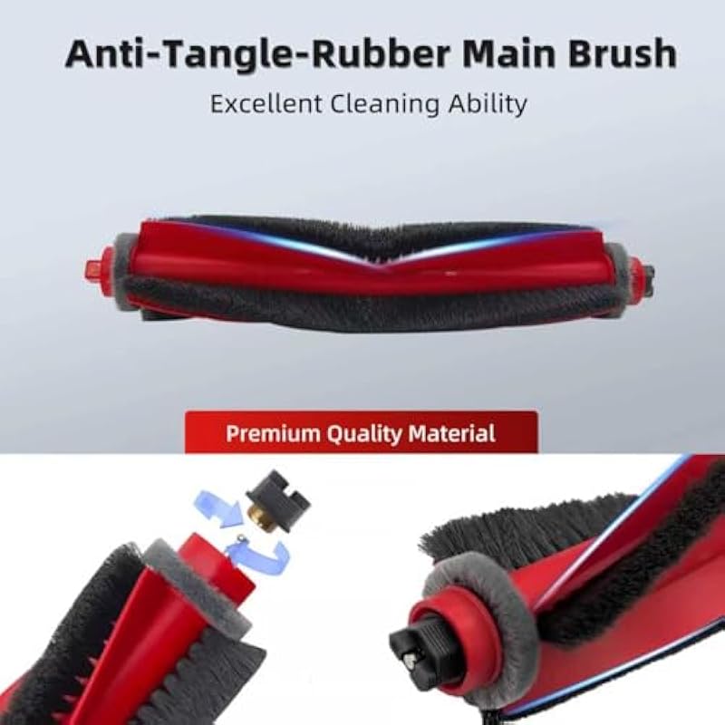 - 【Zero-tangling Main Brush】:The main roller brush and side brushes are made of high-quality rubber and nylon bristles, which are soft and durable, can easily pickup 99% of debris. [Please clean roller brushes every 2 weeks and replace it every 6-12 months for keep suction power and performance.]