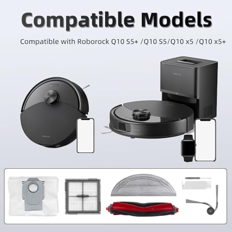 - 【Parts & Accessories】:Replacement parts accessories compatible with Roborock ✅️ Q10 S5+ /Q10 S5/Q10 x5 /Q10 x5+ Robot Vacuum. Easy to install and work as effectively as the original accessories. [Please confirm your robot model before ordering.]