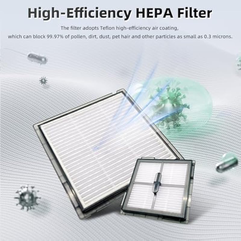 - 【HEPA Filters】:This washable filter replacement is designed with an effective air-tight sealing mechanism that minimizes air pressure loss, ensuring consistent and powerful suction throughout the cleaning [Please clean filter with the included cleaning brush or wash it every 2 weeks and replace it every 6-12 months.]