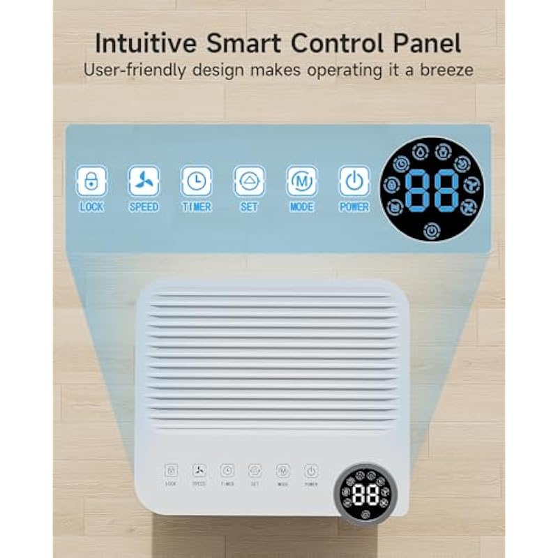 - Effortless Smart Control — Seamlessly manage your dehumidifier with our intuitive smart control panel. With just a touch, you can effortlessly set your desired humidity, adjust the 24-hour timer, monitor moisture levels, and customize fan speed. Designed for user-friendliness, it’s perfect for everyone in the household. Let our home dehumidifier maintain your ideal environment effortlessly