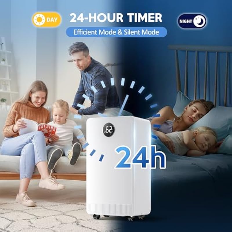 - 【24H Timer & Hands-Free Drainage】- Set it and forget it!. Program 24-hour schedules (e.g., off during peak energy rates). Auto-stop when full + continuous drain hose, lets you run for weeks without manual intervention – perfect for vacations!