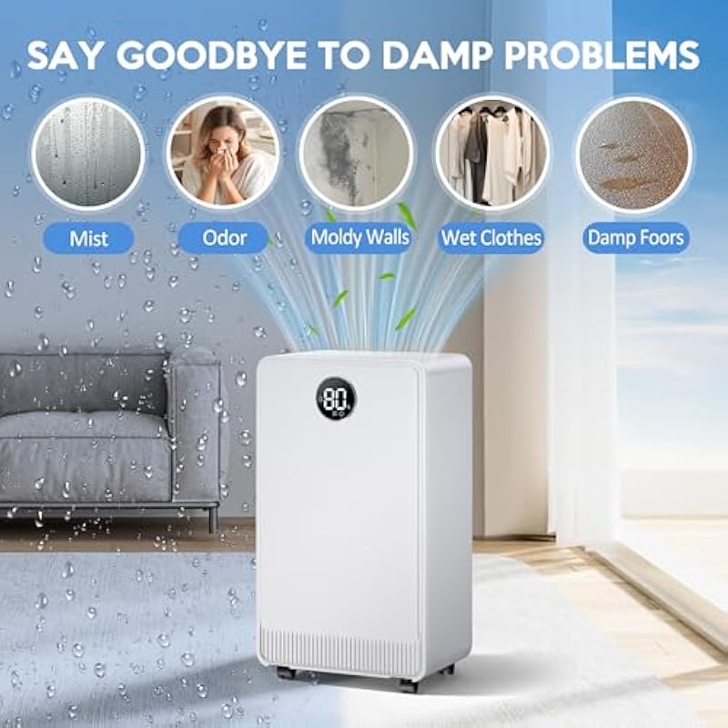 - 【Child Lock & Precision Control】- Family-safe and foolproof. Lock settings against accidental changes. Adjust humidity in 5% increments (30%-80%) to prevent over-drying or insufficient dehumidification. Four wheel steering, easy to move.