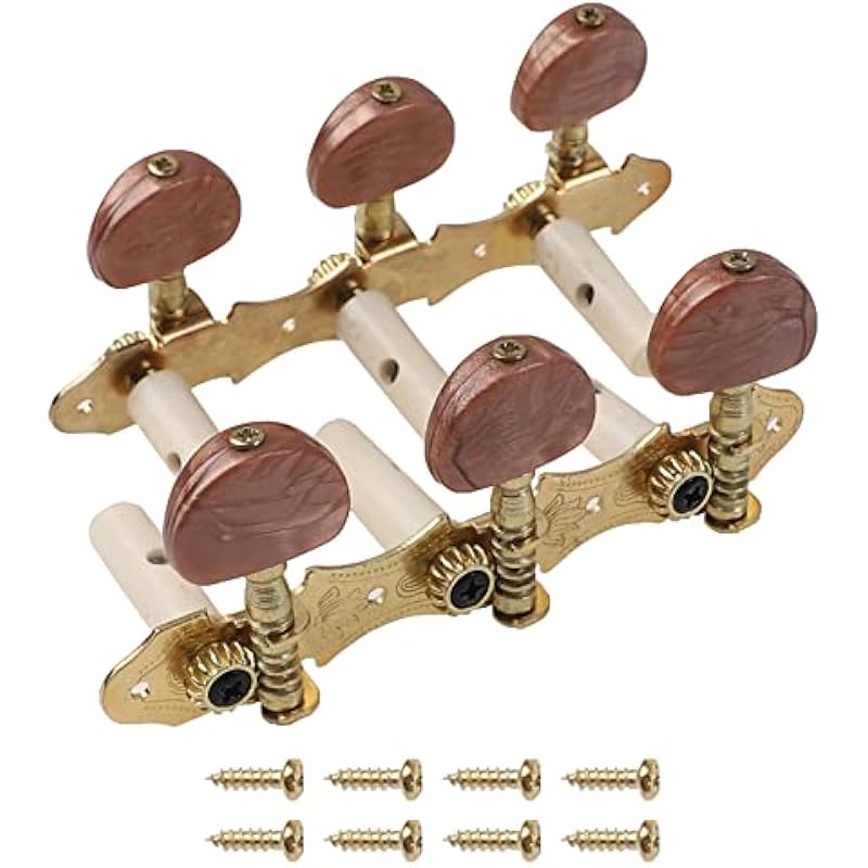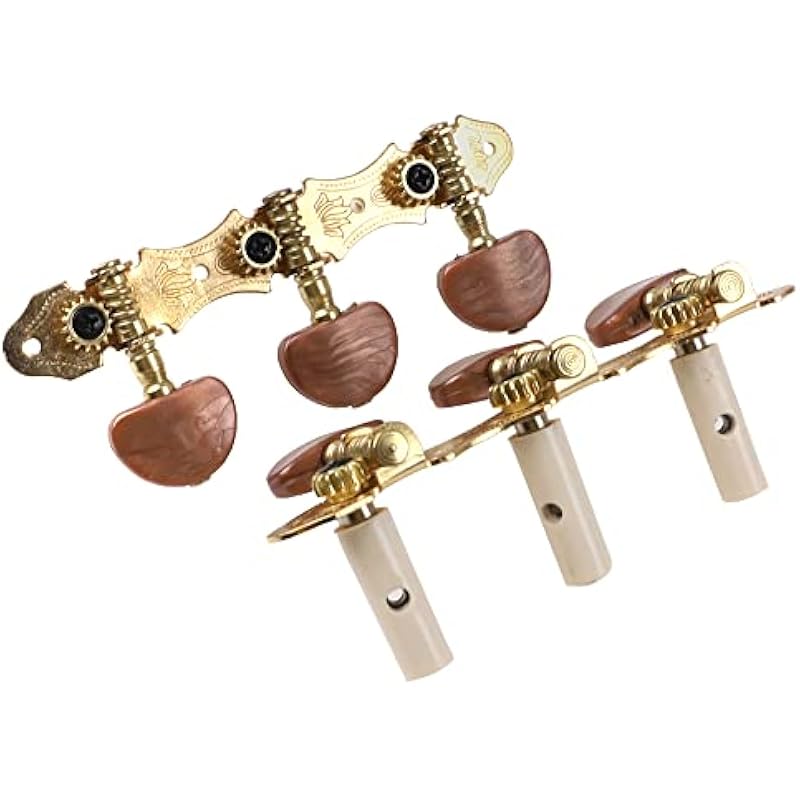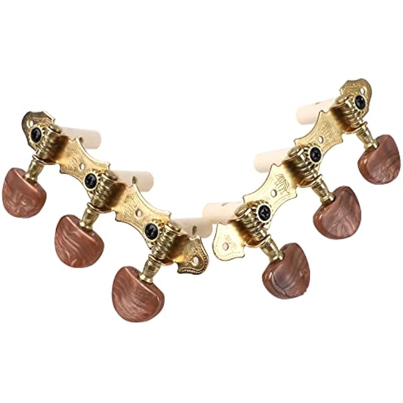 2Pcs Yootones Agate Brown Buttons Classical Guitar String Tuners Keys Machine Heads Tuning Pegs 3L3R Compatible with Classical Guitar (Gold)