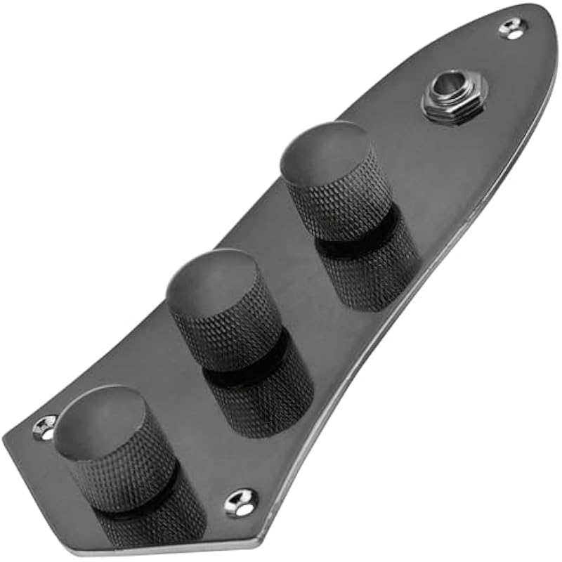 3 Bands Loaded Control Plate Pre-Wired w/Preamp Knobs Pots Compatible with Fender Squier Jazz J Bass (Black)