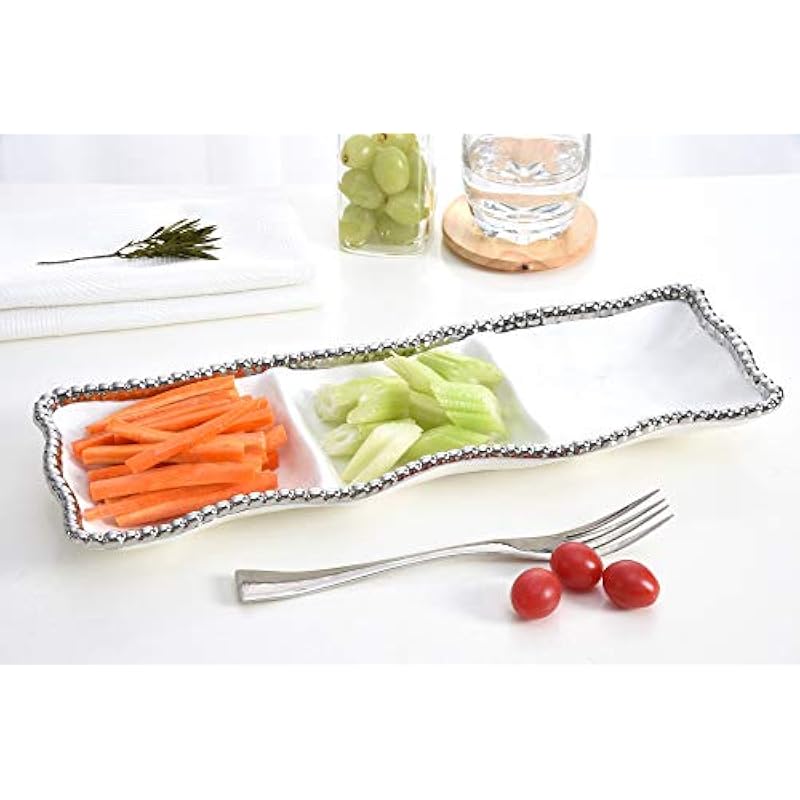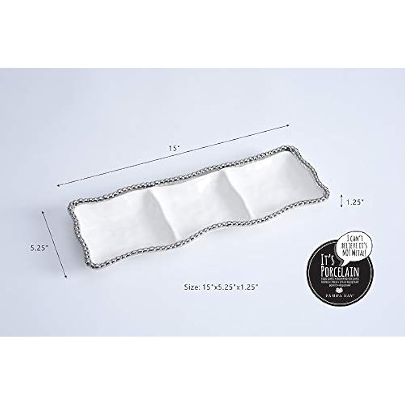 - I CAN’T BELIEVE IT’S NOT METAL! This tray has a high fired porcelain base with a titanium finish; this is a perfect serving piece for casual and formal dining, entertaining and dinners for two!