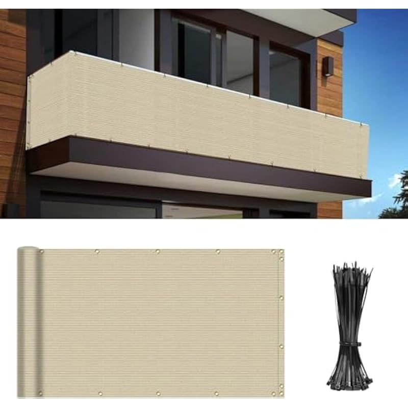 - High Quality Material: 225 GSM new high density polyethylene(HDPE) material, breathable and durable, it can also block 98% of sunlight and provide UV protection. Deck Shield Cover is perfect for Backyard Deck, Patio, Balcony Pool, Porch Railing.