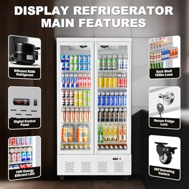 - ECEVT commercial refrigerator is great for commercial businesses or store. Features a secure locking door and a set of keys. This ensures the safety of your products, whether you want to prevent children from accessing beer and wine or lock up your merchandise during the night.