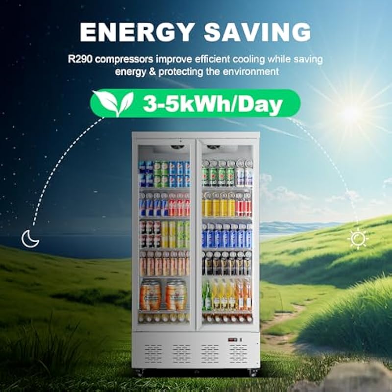 - Our commercial display cooler features a user-friendly digital temperature display and controls, allowing you to effortlessly monitor and adjust the temperature within the range of 34.6 to 46.4℉.It utilizes a compressor cooling method and operates with R290 refrigerant.