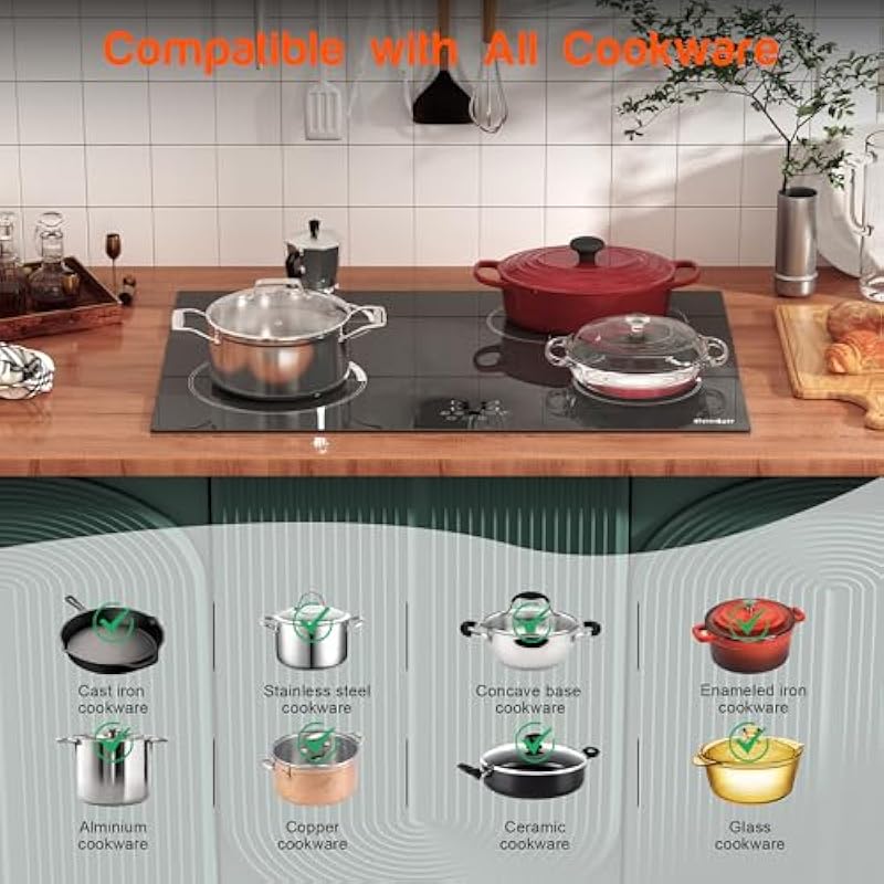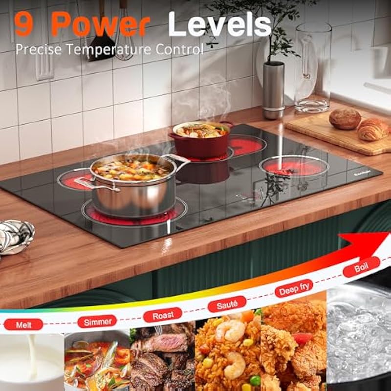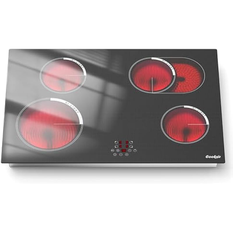 - 🦛【Safety and Convenience Stovetop】Beyond the safety lock and 99 min timer, Cooksir 4 burner electric cooktop is designed with a range of safety and convenience features to make your cooking experience enjoyable and worry-free. It includes residual heat indicator that displays whether the burners are still hot after use, thus preventing accidental burns. Furthermore, it’s also designed for easy cleaning with its smooth glass surface, making the post-cooking clean-up a breeze. All in all, this 30 inch electric cooktop delivers a blend of superior performance, versatility, safety, and convenience.