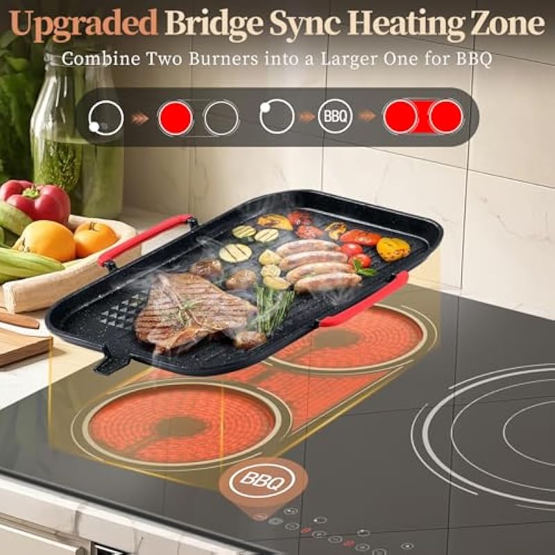 - 🐹| Large Flexible Heating Zones up to 3900W | This 36-inch electric stovetop features a spacious flexible heating zone that delivers up to 3900W of power, making it perfect for accommodating larger cookware like baking pans, griddles, or oval-shaped dishes. The flexible zone allows you to combine two burners into one expansive cooking surface, providing even heat distribution across the entire area. The high power output ensures quick heating and consistent performance, making it a versatile addition to any kitchen.