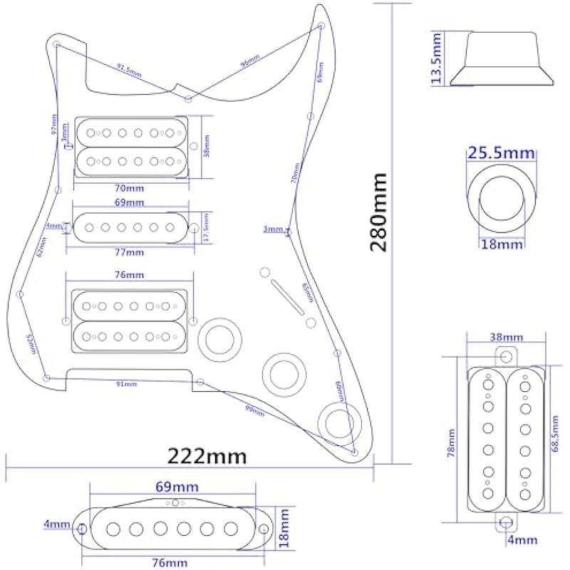 - The HSH pickguard made of PVC material,which is durable and long lasting,11-Holes standard HSH strat style pickguard.
