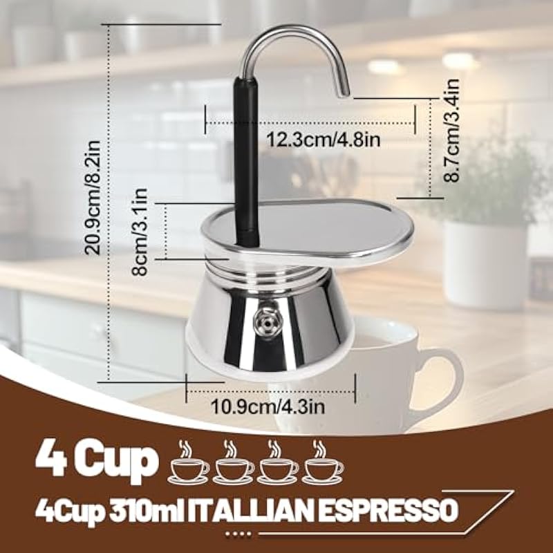 - Catheter Drainage Design: Compared with traditional moka pots, this moka pot eliminates the step of pouring coffee. You only need to put the cup on the tray and wait for the coffee to flow out