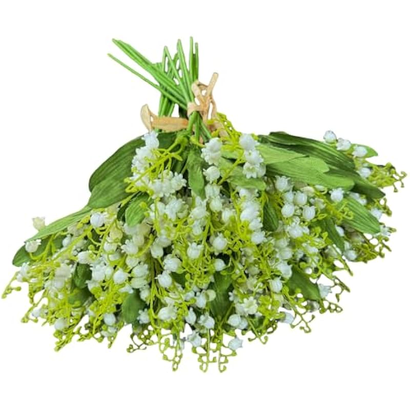 4 Forks Lily of The Valley Artificial Flowers Bouquet,Plastic Flowers for Outdoors,Fake Flowers with Stem,Home Wedding Party Garden Wreath Table Center Pieces Decor (24, White)