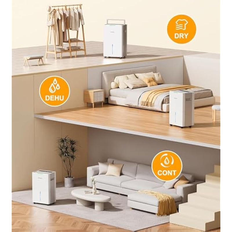 - 3 Smart Modes: Dehumidify, Dry Clothes, or 24/7, Tailor the dehumidification to your needs! Target Mode: Set your desired humidity (35%-80%). Dryer Mode: Accelerate clothes drying in damp weather. Continuous Mode: Provides 24/7 protection for challenging areas like basements and garages. One machine, multiple smart solutions.