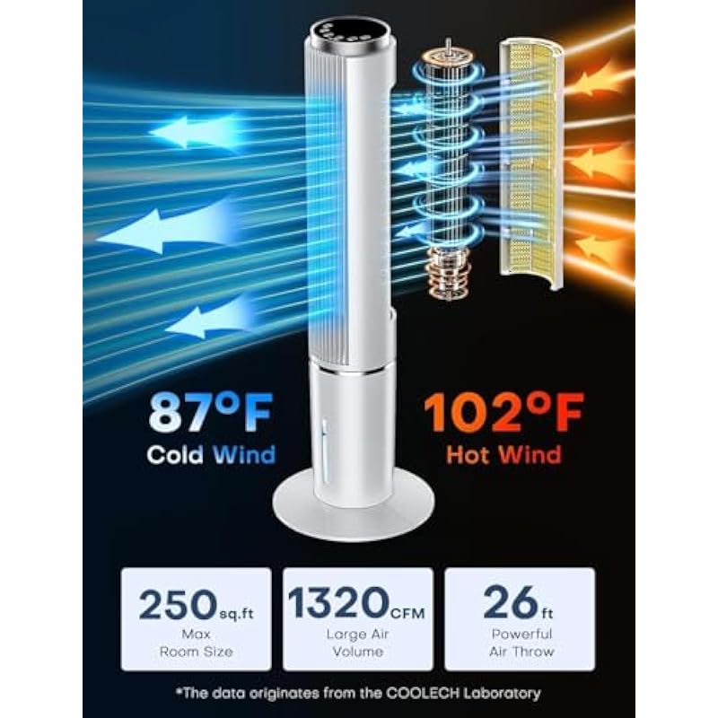 - 【2025 Advanced Cooling Technology】COOLECH’s upgraded air cooler for room features the 2025 latest cooling technology: high-performance motor, innovative air duct design, and 3 high-density cooling pads.