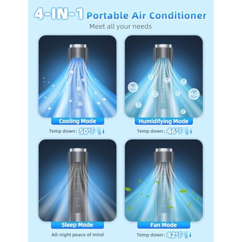 - ใ๐ ๐๐ ๐ ๐๐ฌ ๐ ๐๐ง, ๐๐ข๐ซ ๐๐จ๐จ๐ฅ๐๐ซ & ๐๐ฎ๐ฆ๐ข๐๐ข๐๐ข๐๐ซ ใThis air cooler for room works as a fan, humidifier, and air cooler in a sleek design. 1) Fan: Delivers powerful airflow for ventilation. 2) Humidifier (add water): Combats dryness, improving air humidity and relieving dry skin. 3) Air Cooler (add water and ice packs): Uses evaporation to create a cooling environment, perfect for hot days. The COOLECH 3-in-1 evaporative air cooler adapts seamlessly to your needs.