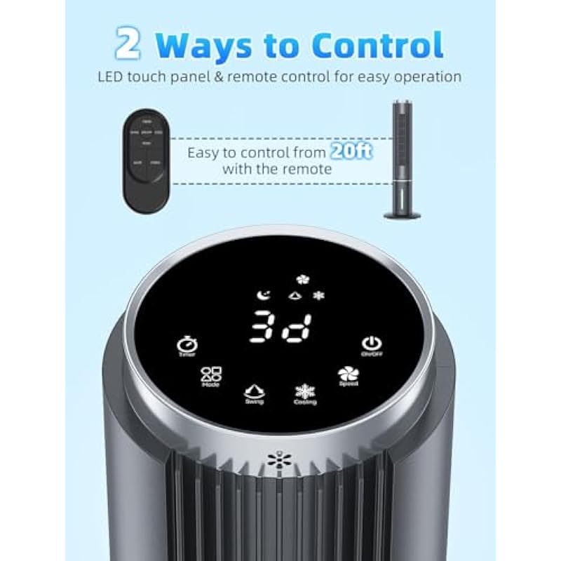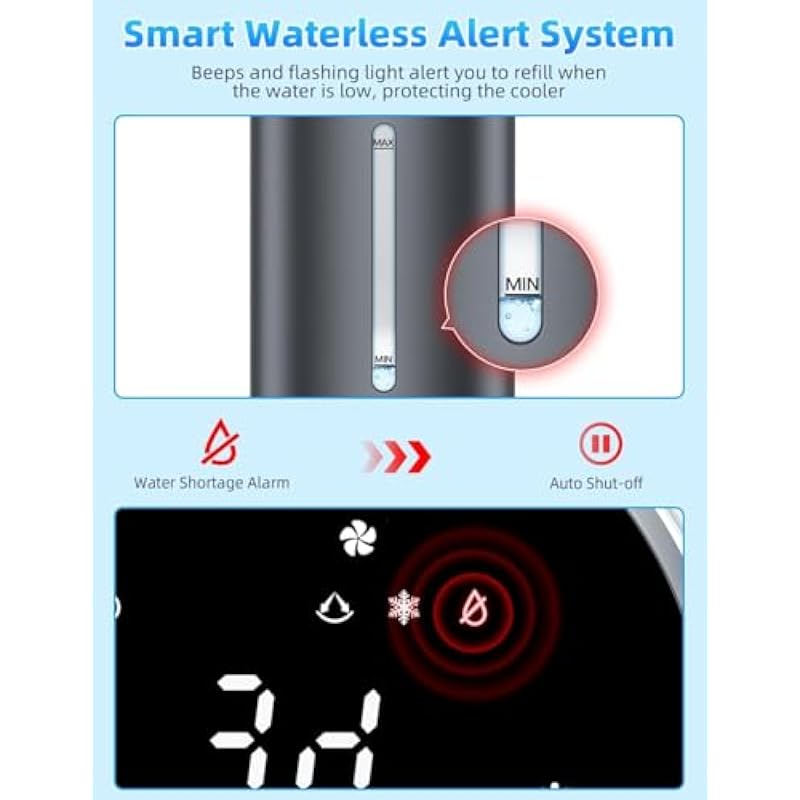 - ใ๐๐ฆ๐๐ซ๐ญ ๐๐๐ ๐๐จ๐ฎ๐๐ก ๐๐ข๐ฌ๐ฉ๐ฅ๐๐ฒ & ๐๐๐ฆ๐จ๐ญ๐ ๐๐จ๐ง๐ญ๐ซ๐จ๐ฅใChoose between 2 control options: the LED touch control or the remote control, our evaporative cooler is designed for ultimate convenience. The intuitive LED display allows for easy adjustments and real-time monitoring. Enjoy convenient remote operation up to 20 ft, ensuring effortless comfort. Whether you’re relaxing or preparing for bed, the remote control puts climate comfort right at your fingertips.