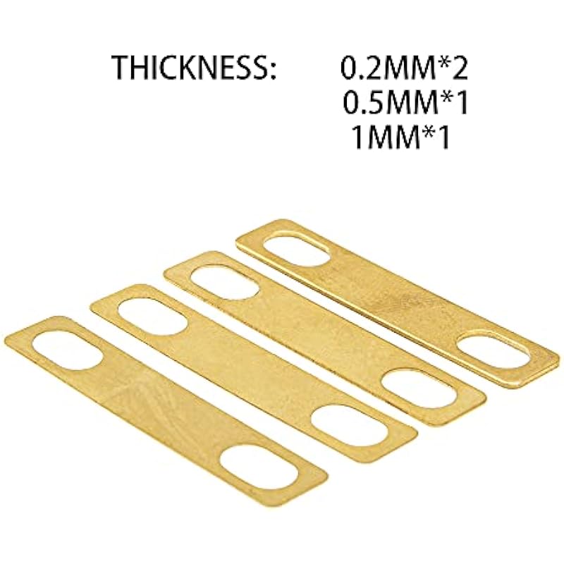 - The Guitar shims set includes 3 thickness sizes brass shims: 0.2mm(2Pcs), 0.5mm and 1mm, necessary Luthier Tools for Electric Guitar Bass Players.