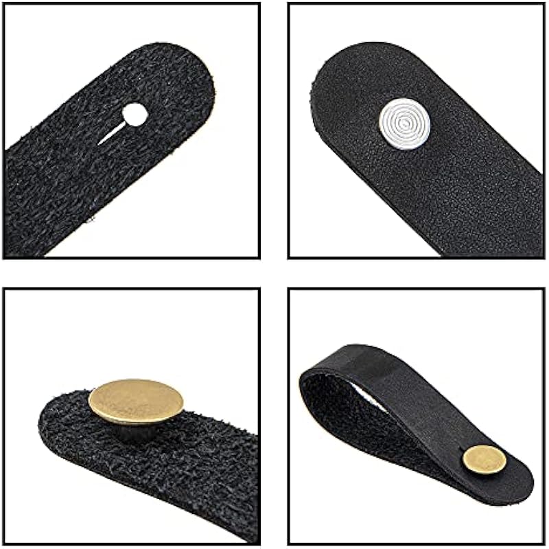 6Pcs Acoustic Guitar Neck Strap Leather Guitar Headstock Tie Compatible with Guitar Button Neck Adapter Accessory (Black)