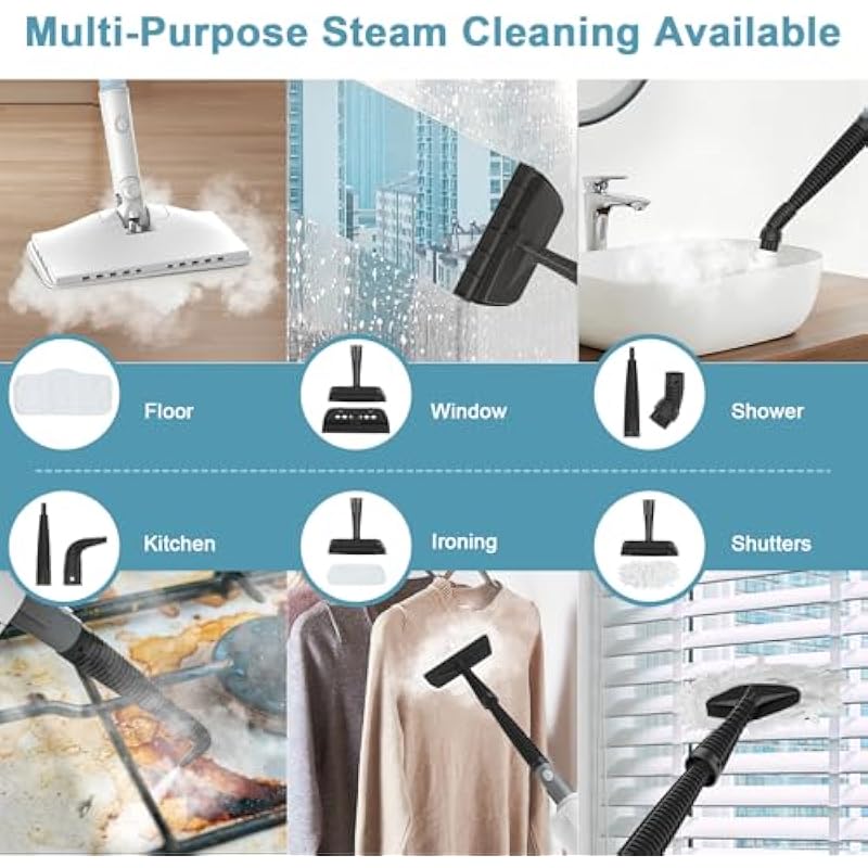 - 【Versatile 6-in-1 Cleaning with 5 Attachments】 From sealed floors to bathroom tiles, kitchen stovetops, and even curtains, this steam cleaner for home adapts to any surface. Includes 5 specialized attachments for windows, desktops, basic ironing, and more—making it your all-in-one home cleaning partner.